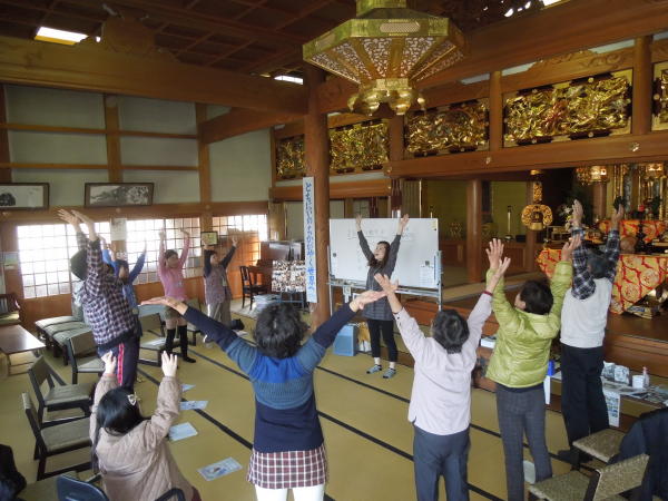 いつものように、お互いの体調を知らせあったり、最近感動したことなどをおしゃべりしたあと、リズム体操、発声練習をしました。